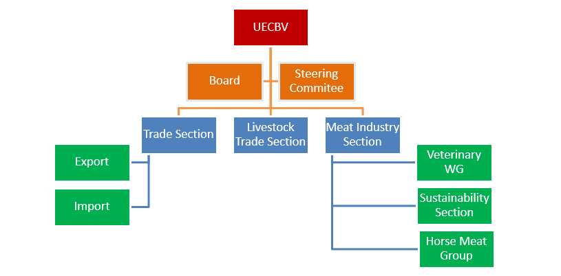 Le secrétariat de l’UECBV assure la coordination des travaux de ses experts au sein de sections et commissions abordant les problèmes de l’industrie de la viande, du commerce international et des animaux vivants.